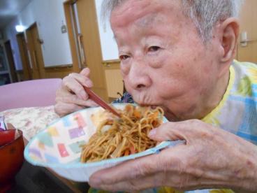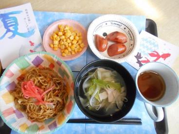 お楽しみメニューとして、夏祭りの屋台をイメージした焼きそばやフランクフルトをご用意しました。皆様、あっという間に完食されていました。