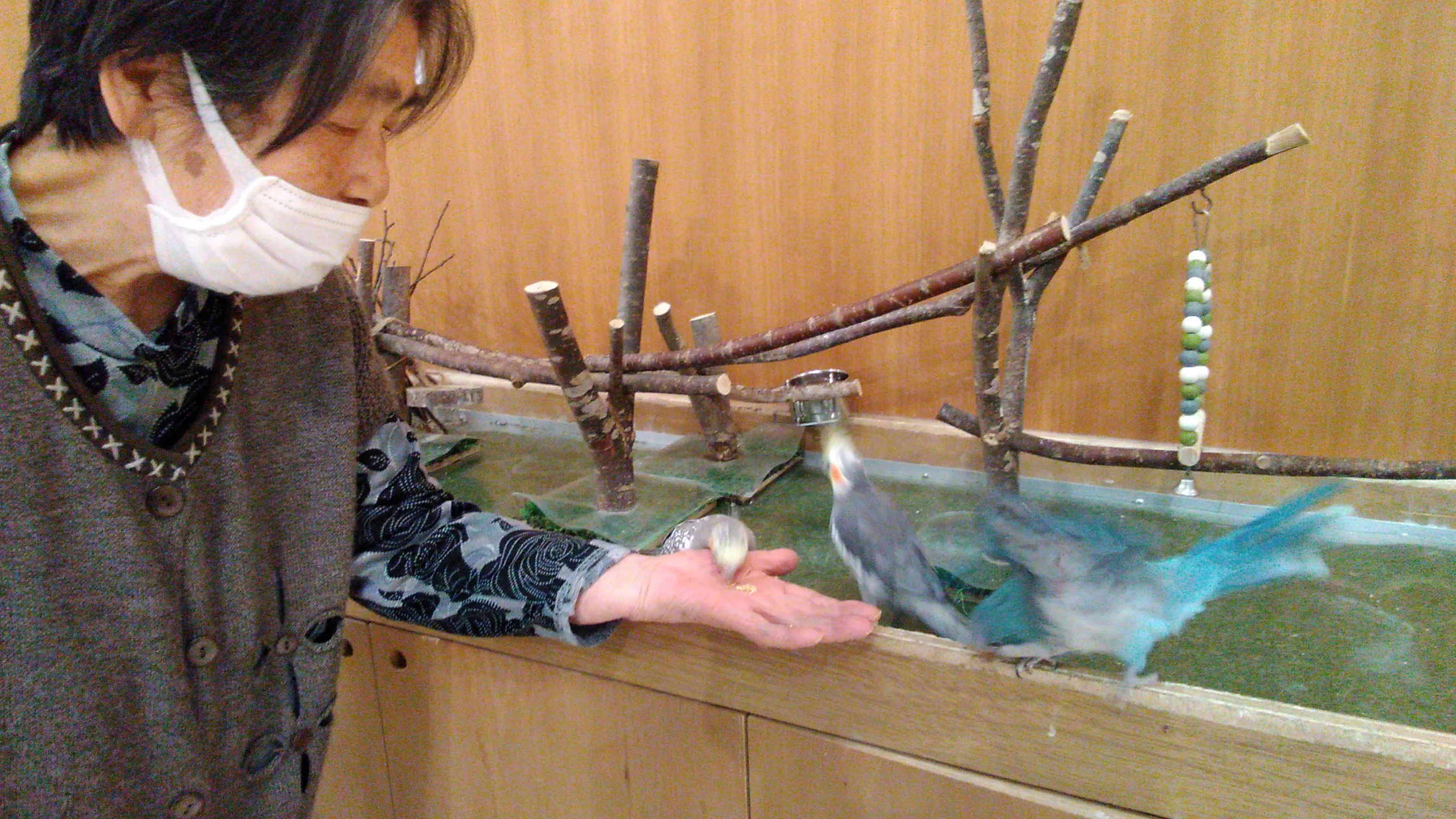 亀、フクロウ、ナマケモノ、インコ、イグアナなど様々な動物と触れ合い、餌やり体験なども行いました。動物が好きなお客様のためとても喜ばれており、帰りの車の中でも話しが弾み、笑顔が多く見受けられました。