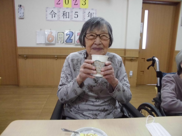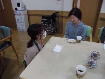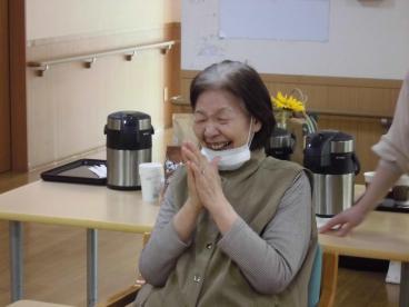 介護スタッフや他のお客様など、いつも変わらない顔ぶれの中で日々を送っています。そんな外部との関わりが少ない生活に変化をもたらすのが、“ボランティア活動の導入”。人との関わりを求めるお客様にとって、ボランティアスタッフとの交流は、地域コミュニティとのつながりの場となります。そこでこの度、某コーヒーショップの店員さんより美味しいコーヒーを提供していただきました。皆様、美味しいコーヒーを召し上がりながら、楽しい時間を過ごすことが出来ました。