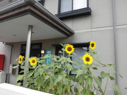 ツクイ新潟姥ヶ山グループホームのひまわりも、夏の太陽のもと元気に育ってくれました。4月に、お客様方に種植えをしていただき、毎日水まきを手伝っていただきながら、いつ咲くかとシャッターチャンスを狙っていました。(土の性質のせいなのか、小ぶりの可愛いひまわりです)