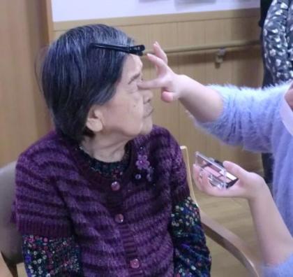 学生の皆さんが11月、3回に亘って、「一緒に美しくなりませんか?」をテーマにメイクなどを行いに姥ケ山グループホームに来てくださいました。