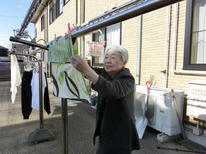 お天気の良い日にはご自分で洗濯物を干し、取り込んだ洗濯物は皆さんで役割分担して畳んでくださいます。