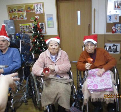 まずは、クリスマスソングに合わせて、カスタネットやハンドベル等で演奏会。