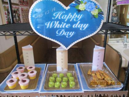 3月14日はホワイトデーという事で、バレンタインデーのお返しの代わりに、おやつバイキングを開催いたしました!