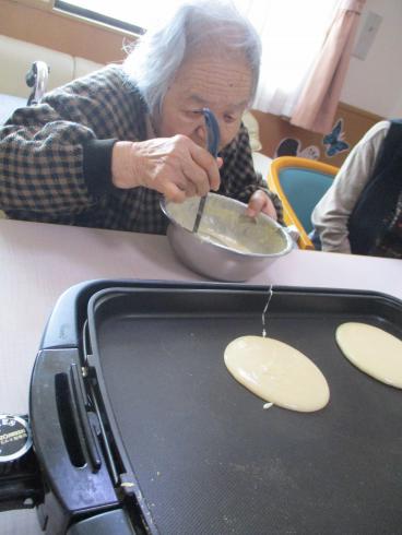 お客様の目の前で、ホットプレートで生地を焼きました!