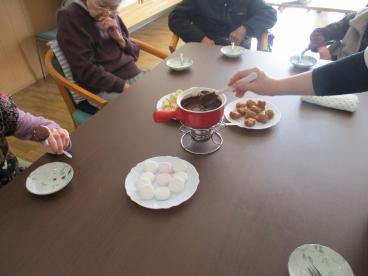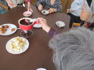 また別の日にはチョコレートフォンデュを行い、皆様で召し上がりました。