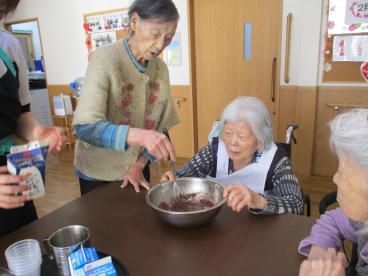 2月14日はバレンタインデーという事で、お客様におやつを作るのをお手伝いしていただきました!