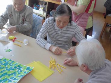 装飾作りの一部をご紹介。アジサイや鯉のぼりを丁寧に作られていました。