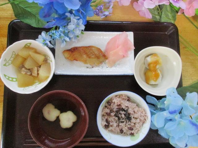 こちらの女性は、金目鯛の煮つけとお赤飯、綺麗なケーキ