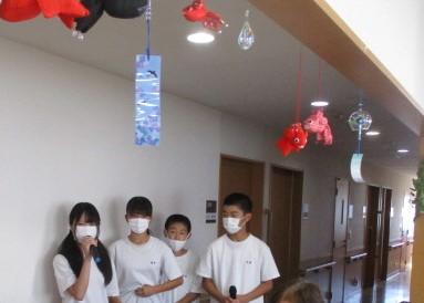 9/14(木)15(金)、厚木市立睦合中学校の職業体験学習として、中学2年の生徒さん4名が当ホームに実習に来られました。車いすの試乗体験ほか、日常の生活であるお掃除や洗濯、体操、お昼ご飯作りを一緒に行いました。平成21、22年生まれの学生さんたちのおじいちゃんおばあちゃんよりもさらに先輩のお客様。今回の多世代交流の思い出が、将来、認知症の方が4人に1人と言われている社会を支えていく学生さんたちにとって、ちょっぴり楽しくポジティブなものになってくれてたらと願います。また、当ホームの避難所は学生さんらが通う睦合中学校。日頃から顔の見える関係を築き、有事の際の安心に繋げていきたいと思います。