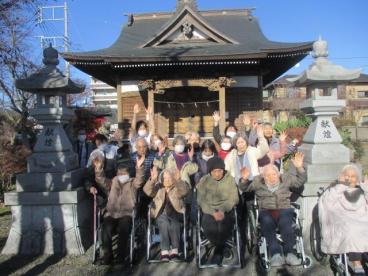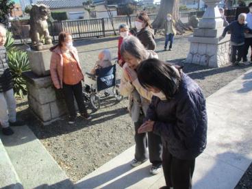 元旦の午後、みなさんで隣の神社へ歩いて初詣に行ってきました。元旦の出勤者が少ない中、自治会長が協力してくださり、なんとかお参りすることができました。いつも有難うございます!