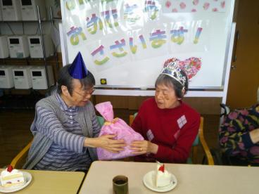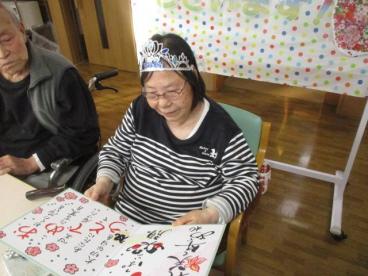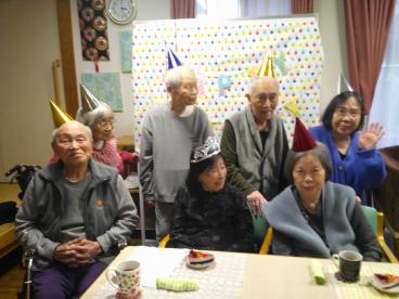 今回も、毎回個性ある誕生会が開催されました。企画立案から嗜好凝らしたプレゼントの用意までご準備下さった居室担当さん。その想いと労力の甲斐あって、素敵な笑顔をみることができました。