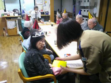 当ホームの誕生会は、それぞれの誕生日ごとに会を開催し、お好きな食べ物やデザートをお出しし、プレゼントも居室担当さんがその方のニーズに合ったものをお贈りしています。