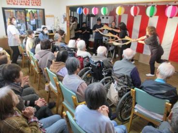 今年のお正月イベントは、和太鼓集団「舞彩駒(ぶさいく)」の皆さんが、和太鼓演奏のほか、今や正月のTV番組でもめっきり見なくなった正月名物、南京玉すだれを披露して下さいました♪