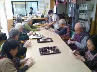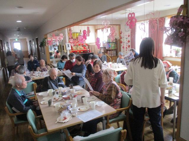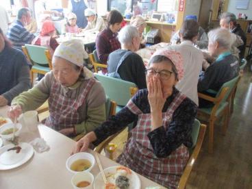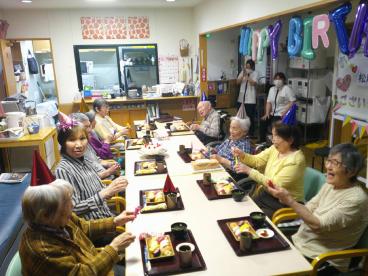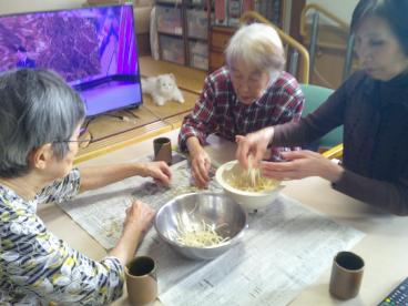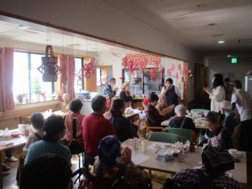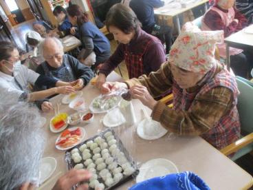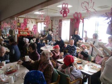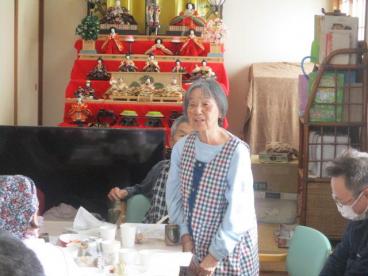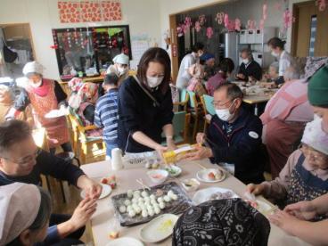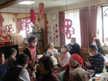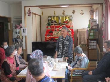 今年の雛祭りイベントは、ご家族やご友人、自治会会長や老人会会長をはじめ、民生委員さんや成年後見人さん、厚木市地域包括ケア推進課職員さんや近隣のケアマネジャーさん、newフェイスではツクイと業務提携しているSOYOKAZEの相談員さんらをお招きし、一緒にてまり寿司を作りお祝い会を行いました。その後、運営推進会議を開催し、ご家族や地域の方とともに、お客様からも広くご意見を頂きました。