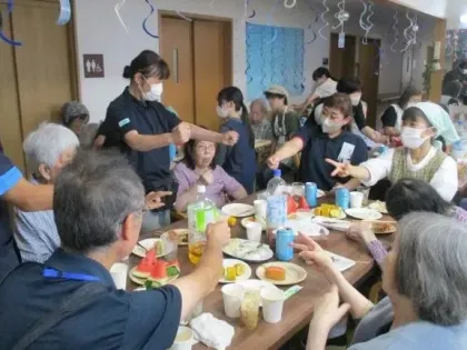 厚木伊勢原エリアの統括責任者より、ツクイ厚木荻野グループホーム20周年の祝いの言葉を頂いたのち、みなさんお待ちかねのビールで乾~杯!