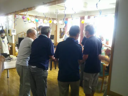 朝10時、介護スタッフとご家族、地域の方が合同で進行確認ミーティングを実施。