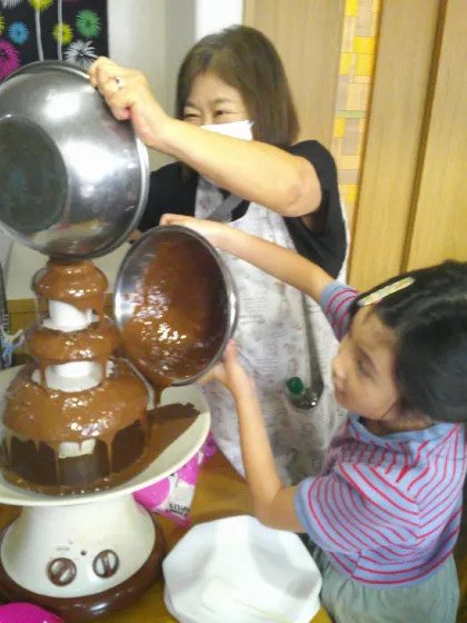 お客様のお嫁さんとお孫さんでチョコファウンテンを担当。