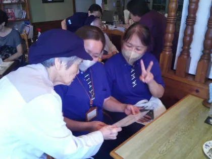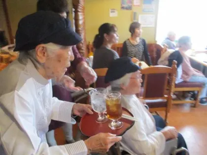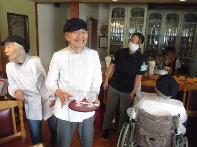 その内容は、ご入居者がウエイトレスとなり、「認知症をもっていてもまだまだやれることがたくさんあるんだぞ。」という所を、来店経験をとおして地域の方に体感して頂きました。