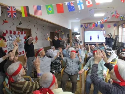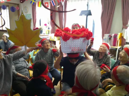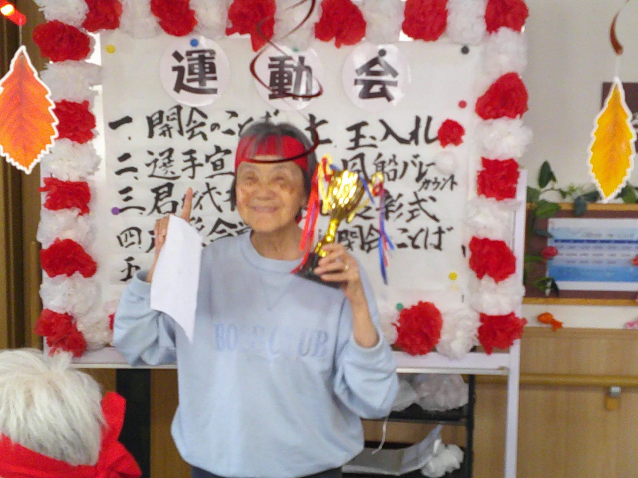10月10日、恒例の秋の大運動会を開催しました!プログラムは、元小学校教頭を定年まで務めあげたご入居者の方が書いてくださいました。