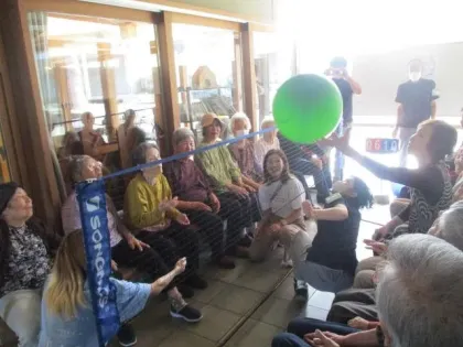 春日台センターセンターは、グループホームをはじめとした高齢者施設やコインランドリー・コロッケ屋さんなどの障がい者就労支援など7つの機能を融合した福祉施設で、厚木荻野グループホームから車で15分ほどの場所にあります。前回は、RUN伴+にてオレンジのTシャツを着て一緒に厚木市内を走りましたが、今回はセンターセンターへお邪魔して一緒にレクリエーションを行ってきました。