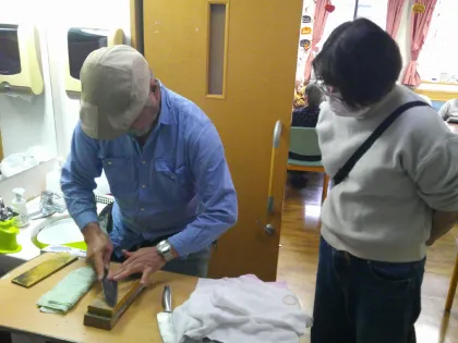 先日、ギターボランティアに来て下さった方の本業はなんと包丁研ぎ屋さん!本日は、地域の方にも広くお声掛けし、施設見学・相談会&包丁研ぎ(特別特価オール500円)イベントを実施しました。