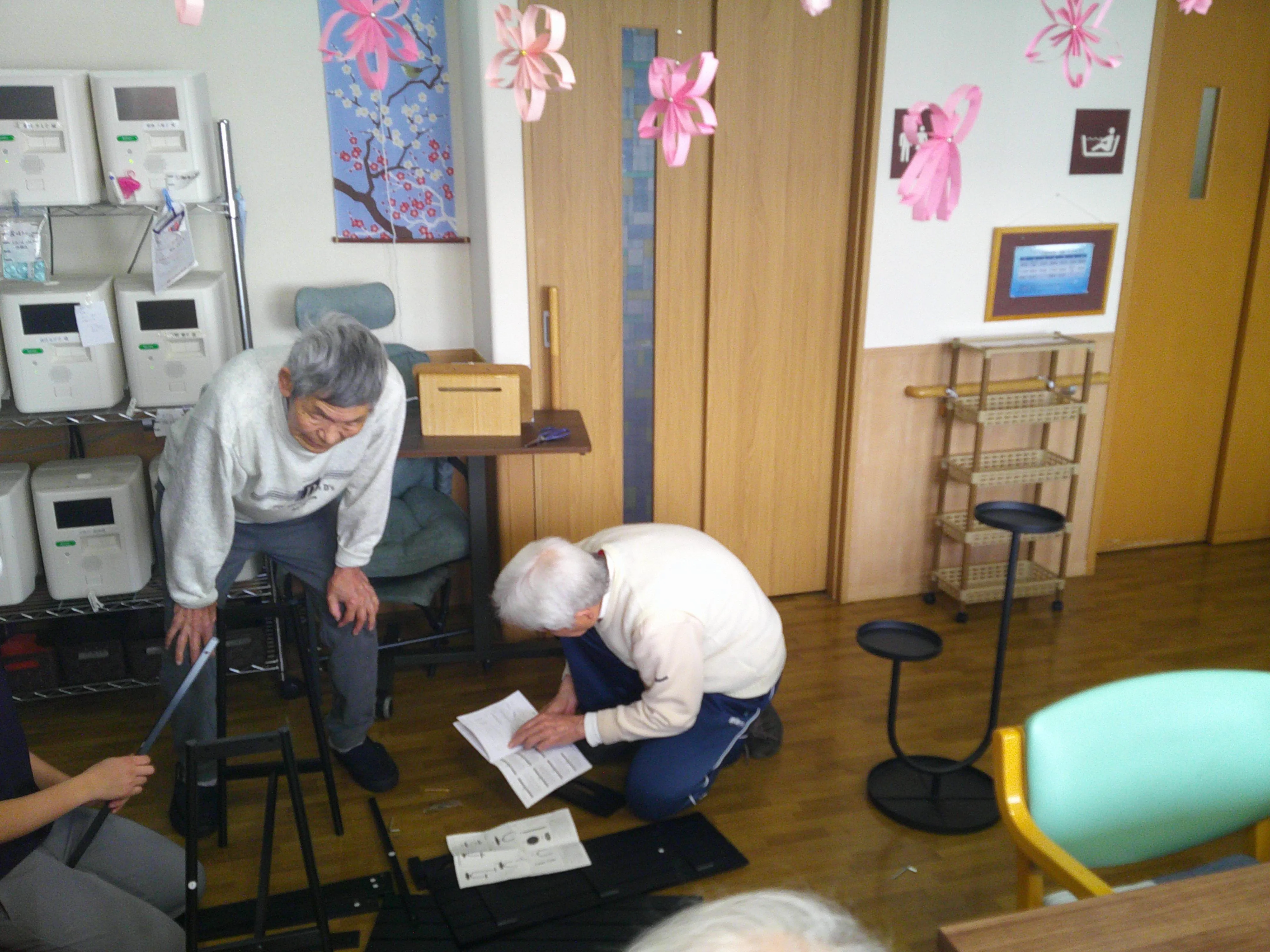 そんな時、ハミズキユニットの男性お二人が手を挙げてくださり、説明書を読みながら玄関用フラワーポットを立派に組み立ててくださいました!