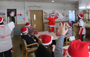 昼食はクリスマスメニューを、おやつは手作りのクリスマスケーキを堪能し、皆様美味しく召し上がったようです。