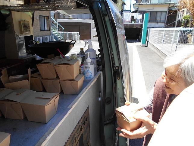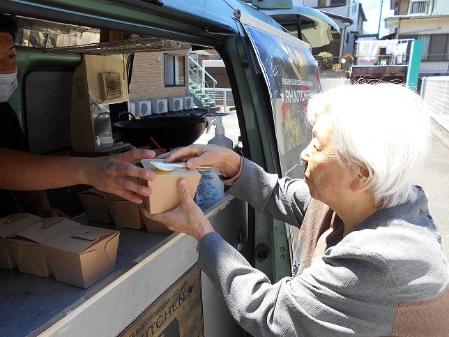 お客様の「何か美味しいものを買いに行きたいね」との声があったので、キッチンカーを呼び1名ずつ好きなお食事を選んで頂きました。目移りしている方もいましたが、ご自分で選んだお食事はいつも以上に箸が進み、皆様良い表情で召し上がっていました。