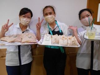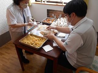 ロゴのスタンプ作りや、ポテトを詰めたりと、お客様に喜んで頂けるよう職員総出で準備をしていると、「今日は何を作っているの?」「なんかおいしそうな匂い」と気になり、覗きに来るお客様もいらっしゃいました。