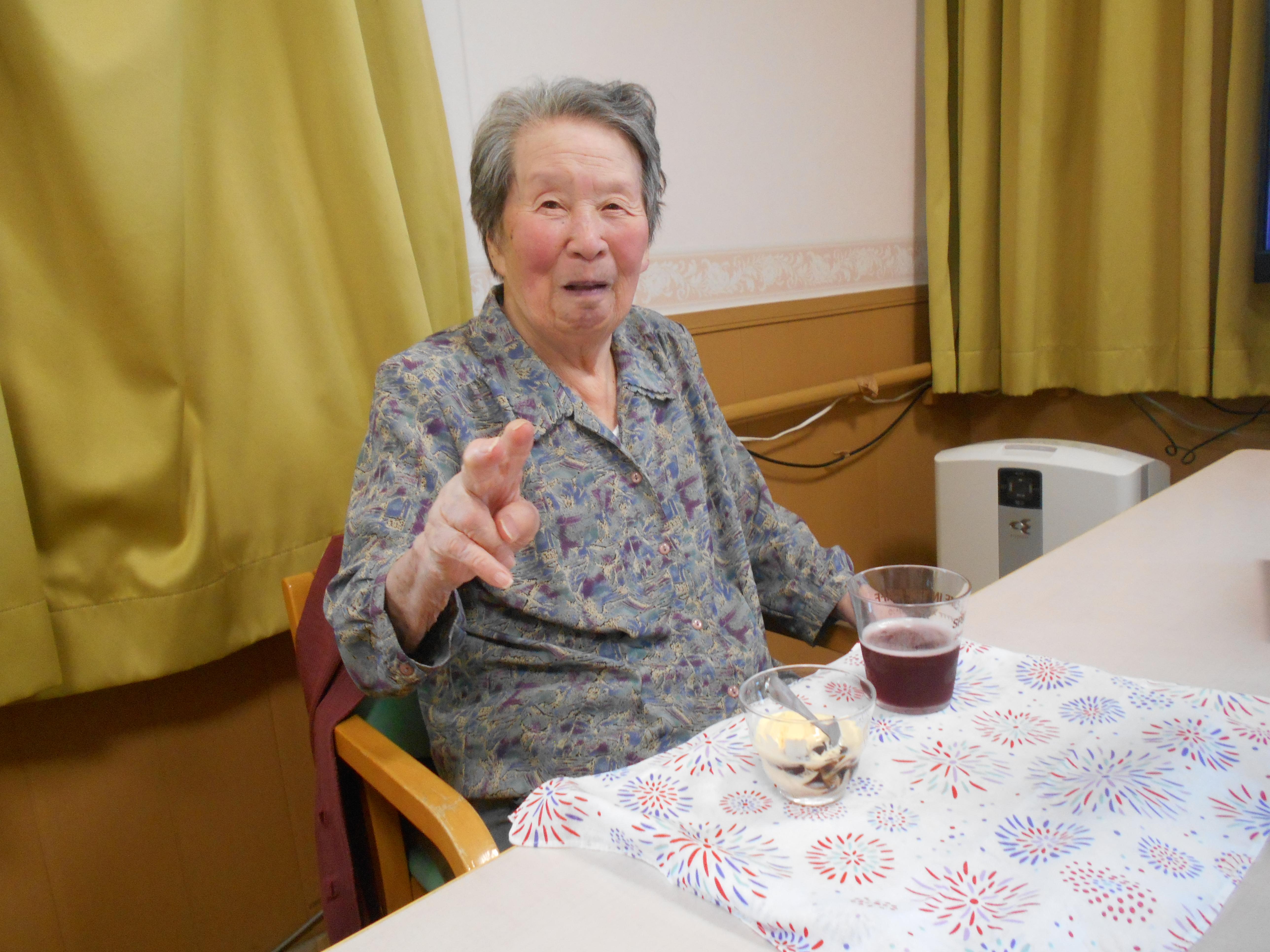 今年は、ワイワイ集まってのお祭りが出来ないこともあり、せめて雰囲気だけでもと思い、夏の風物詩のアイスや綿菓子などご用意し、お楽しみ頂きました。毎日、暑い日が続きますね。