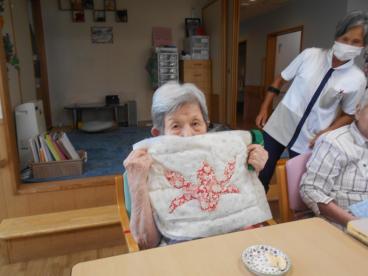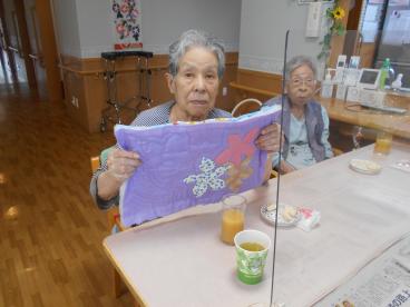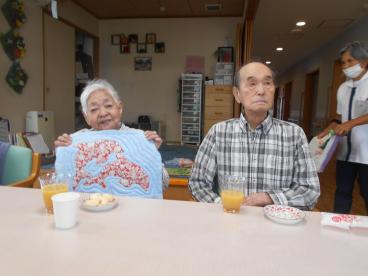 本日のおやつは、オレンジジュースで乾杯されていました。