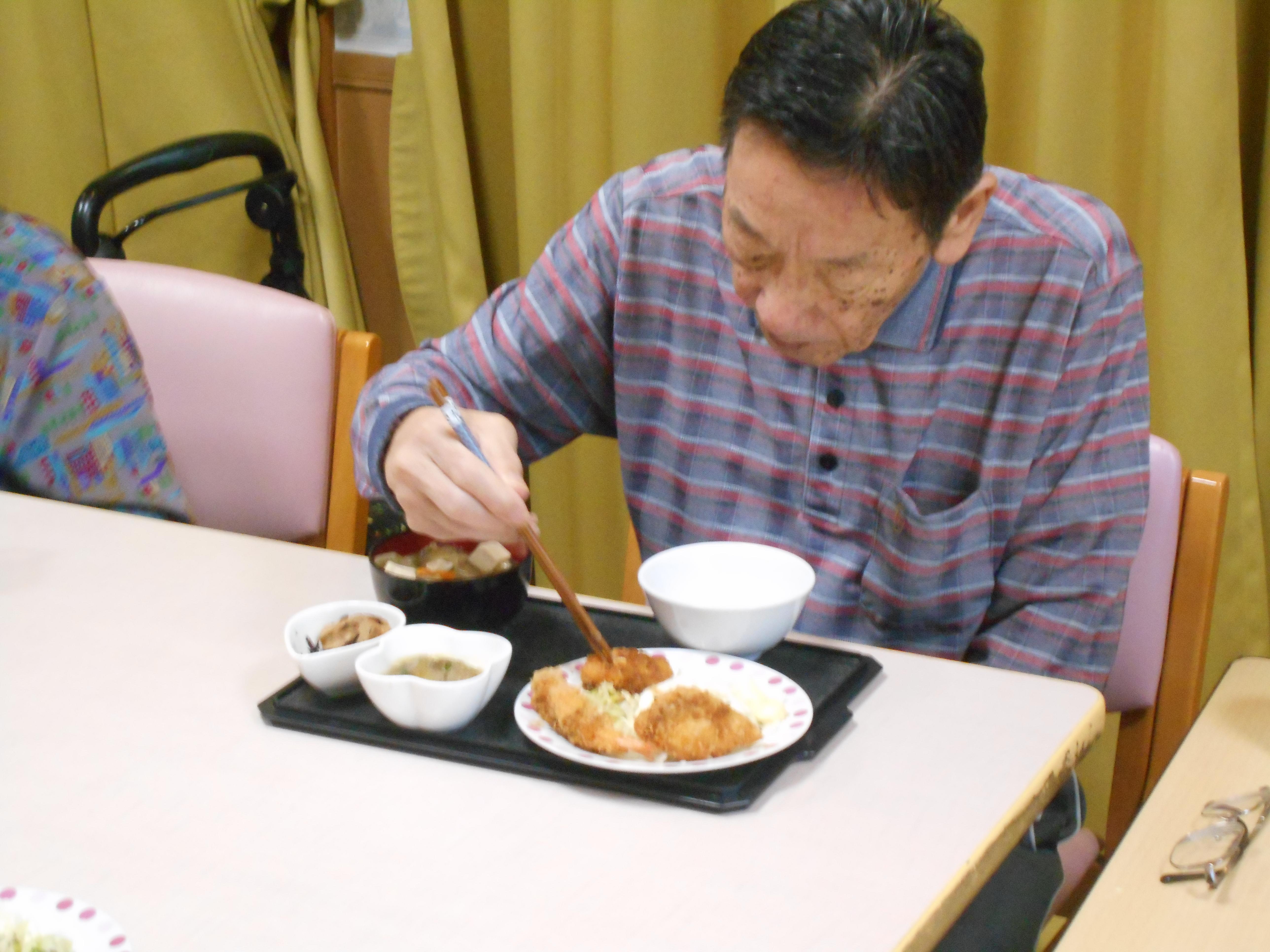 ①ミックスフライ(エビフライ、白身魚のフライ)