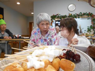 沢山の果物やケーキなど、お好きな物をお選びいただき、出来立てをその場で楽しんで頂きました。