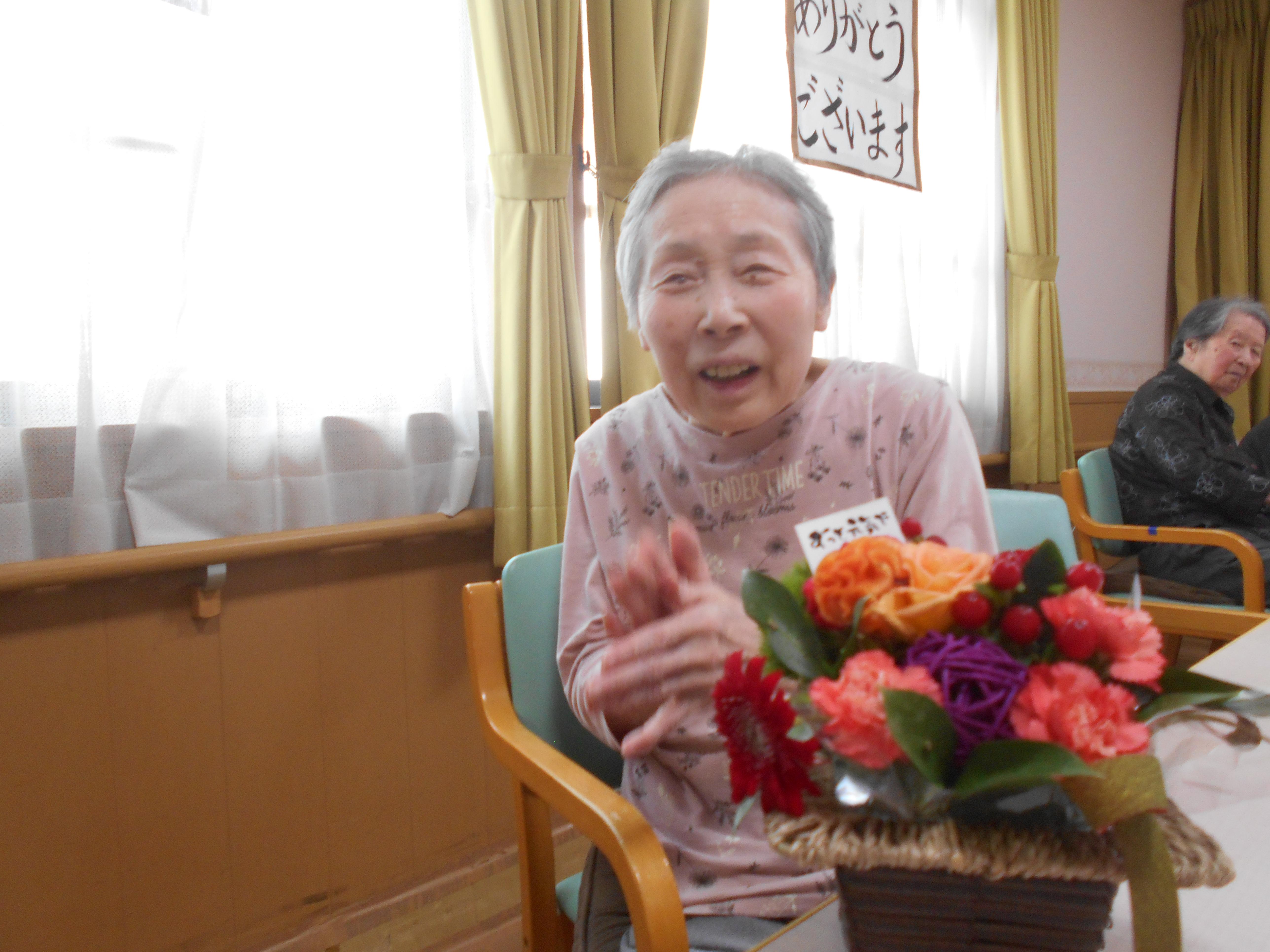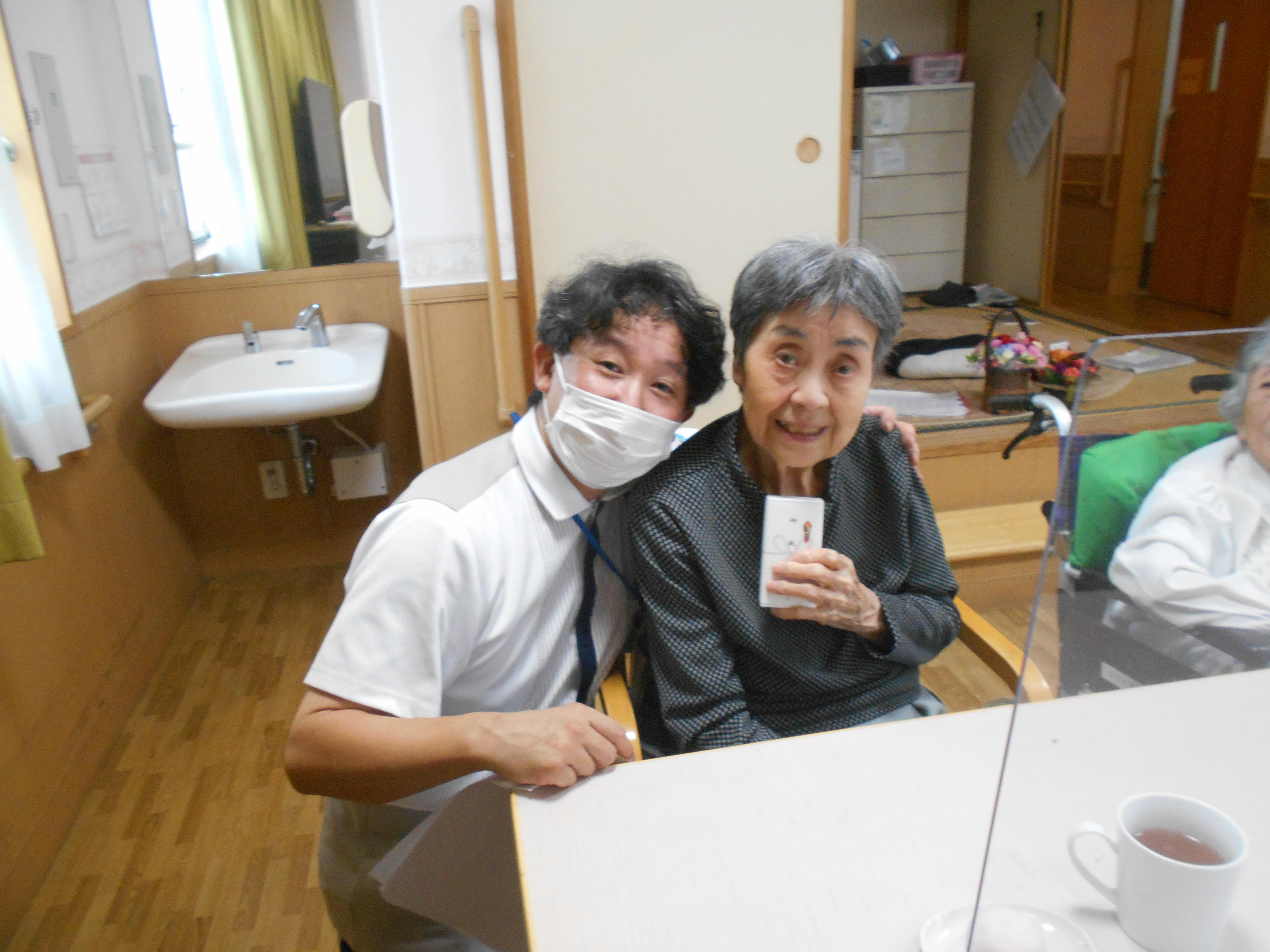本日のおやつは日頃の感謝と皆様のご健康をお祝いし、紅白まんじゅうをご用意いたしました。いつも、素敵な笑顔をありがとうございます。いつまでも元気にお過ごしください。