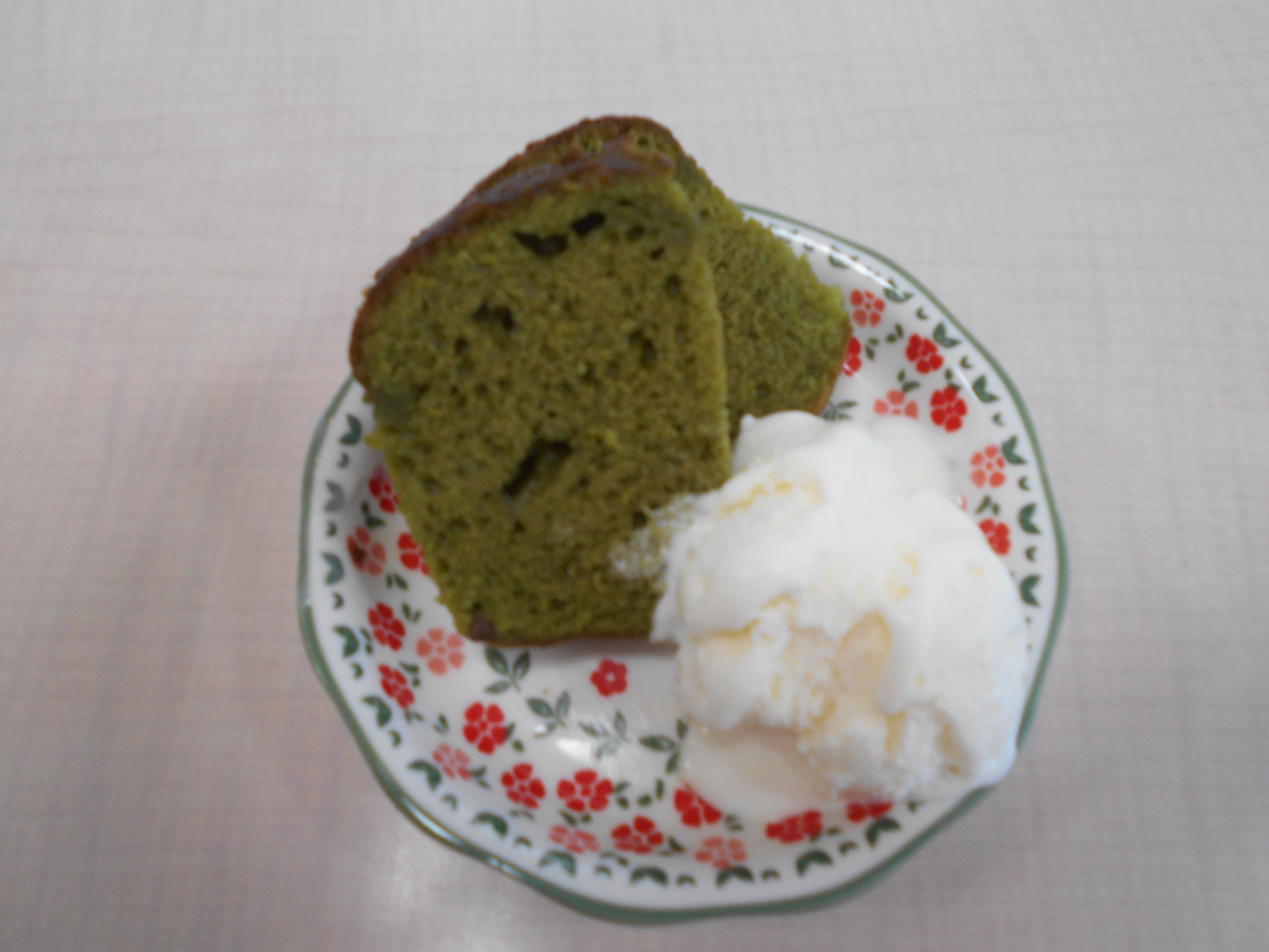 本日のおやつは、【抹茶のパウンドケーキバニラアイスを添えて】を皆様にお楽しみ頂きました。