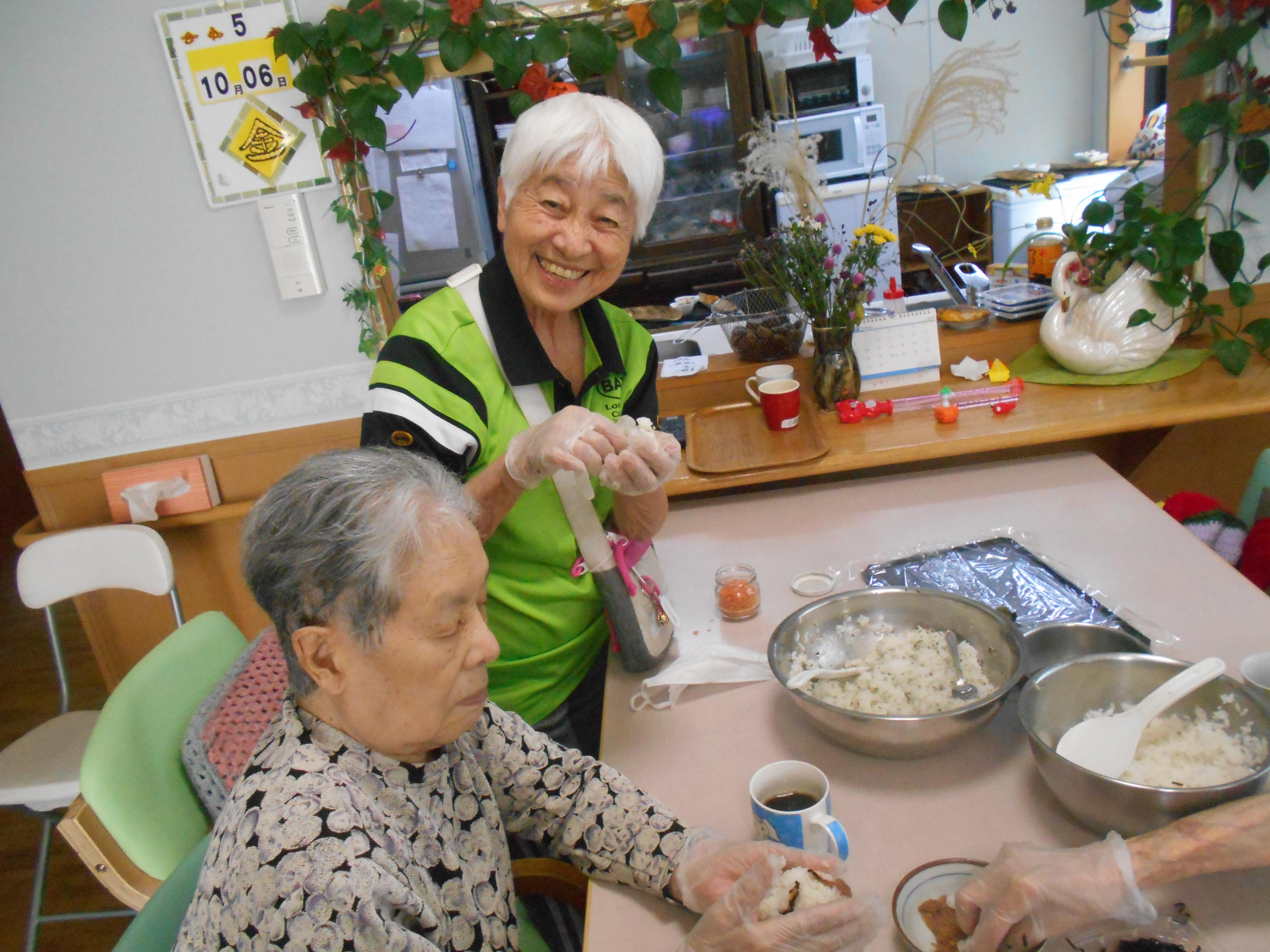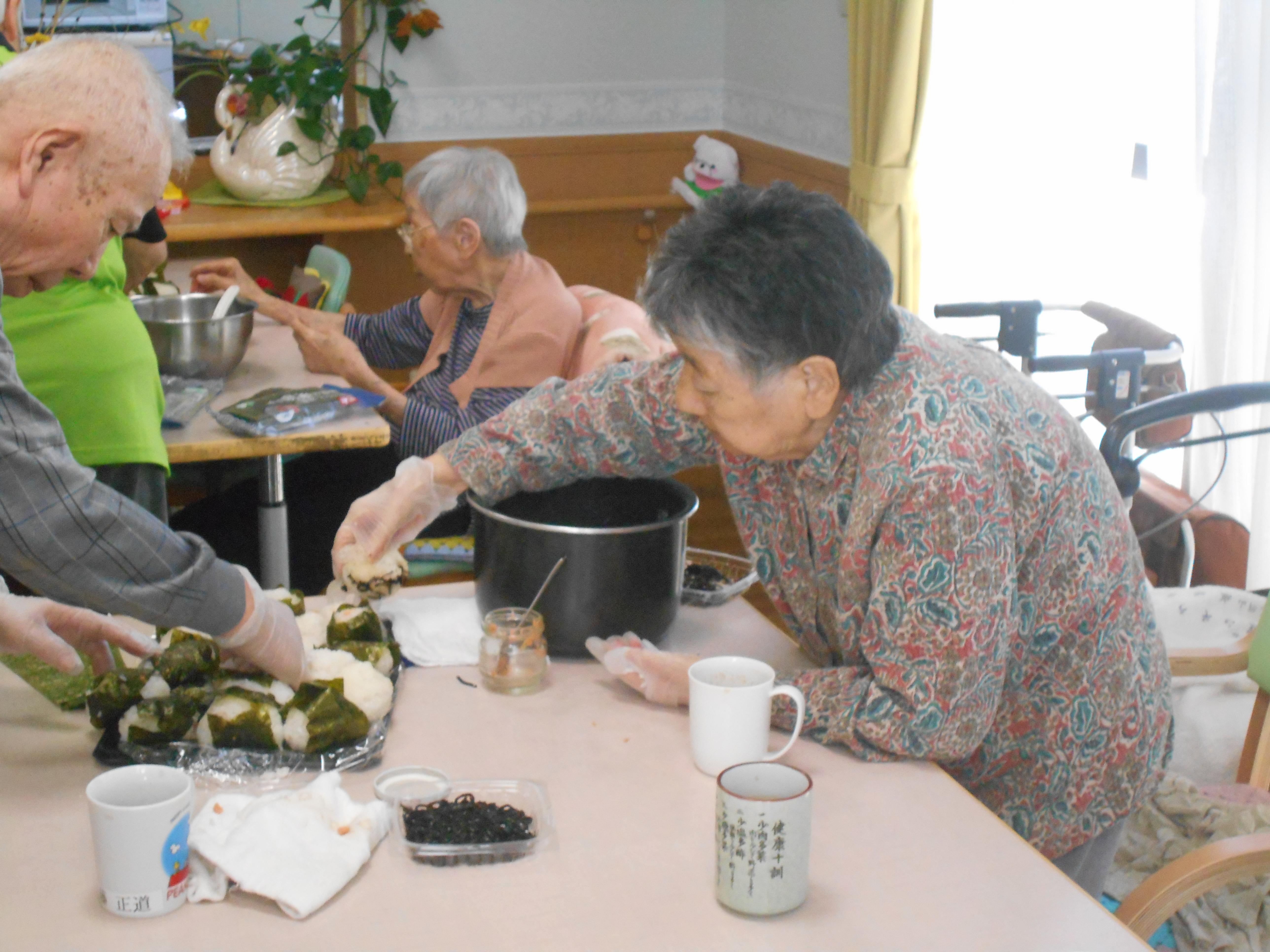 中の具は【昆布】や【梅】【さけ】などお好きな具でおにぎりを握って、昼食で召し上がって頂きました。