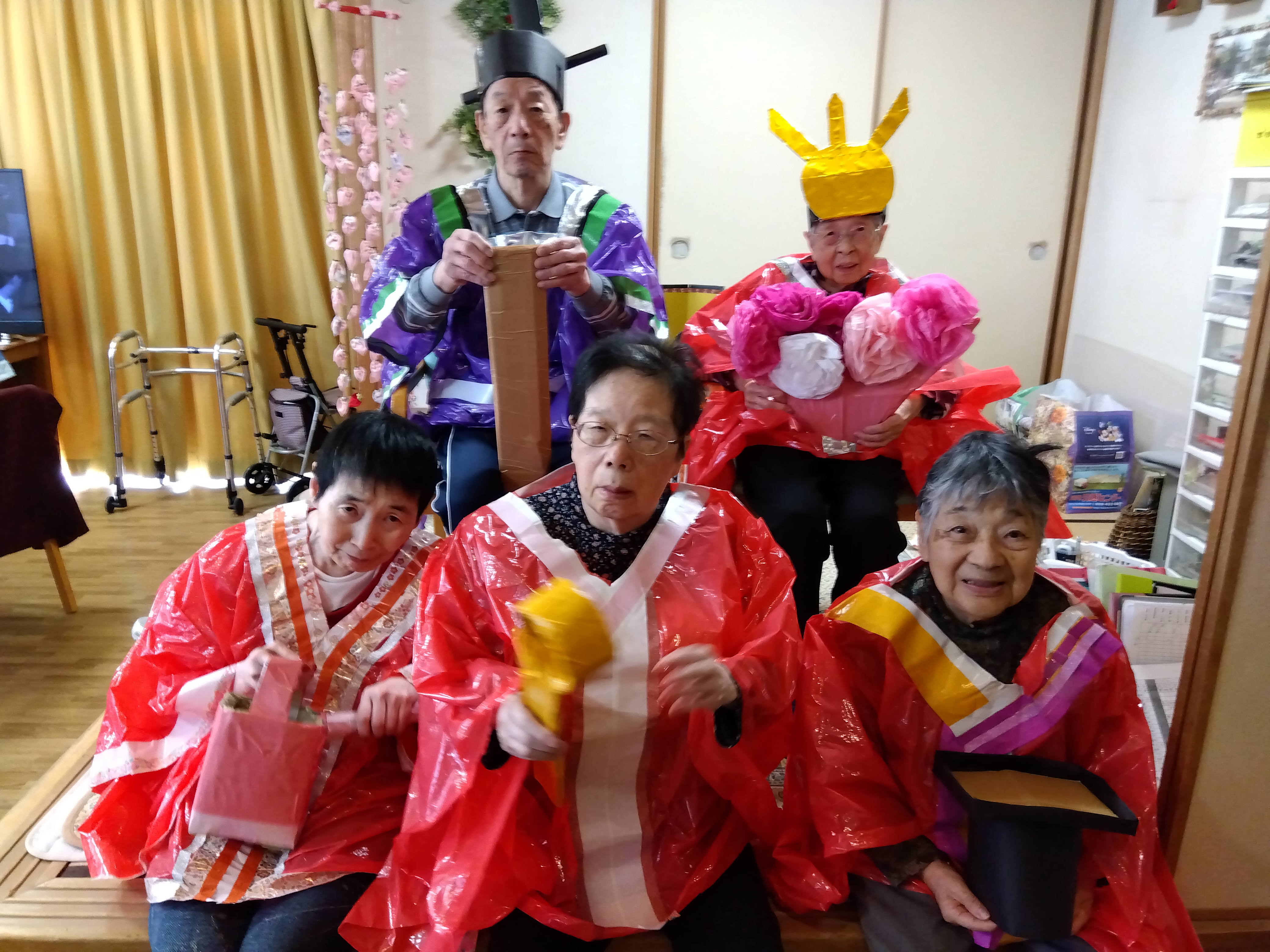 午後はひな祭りの仮装を行い皆様で歌を歌ったりして
