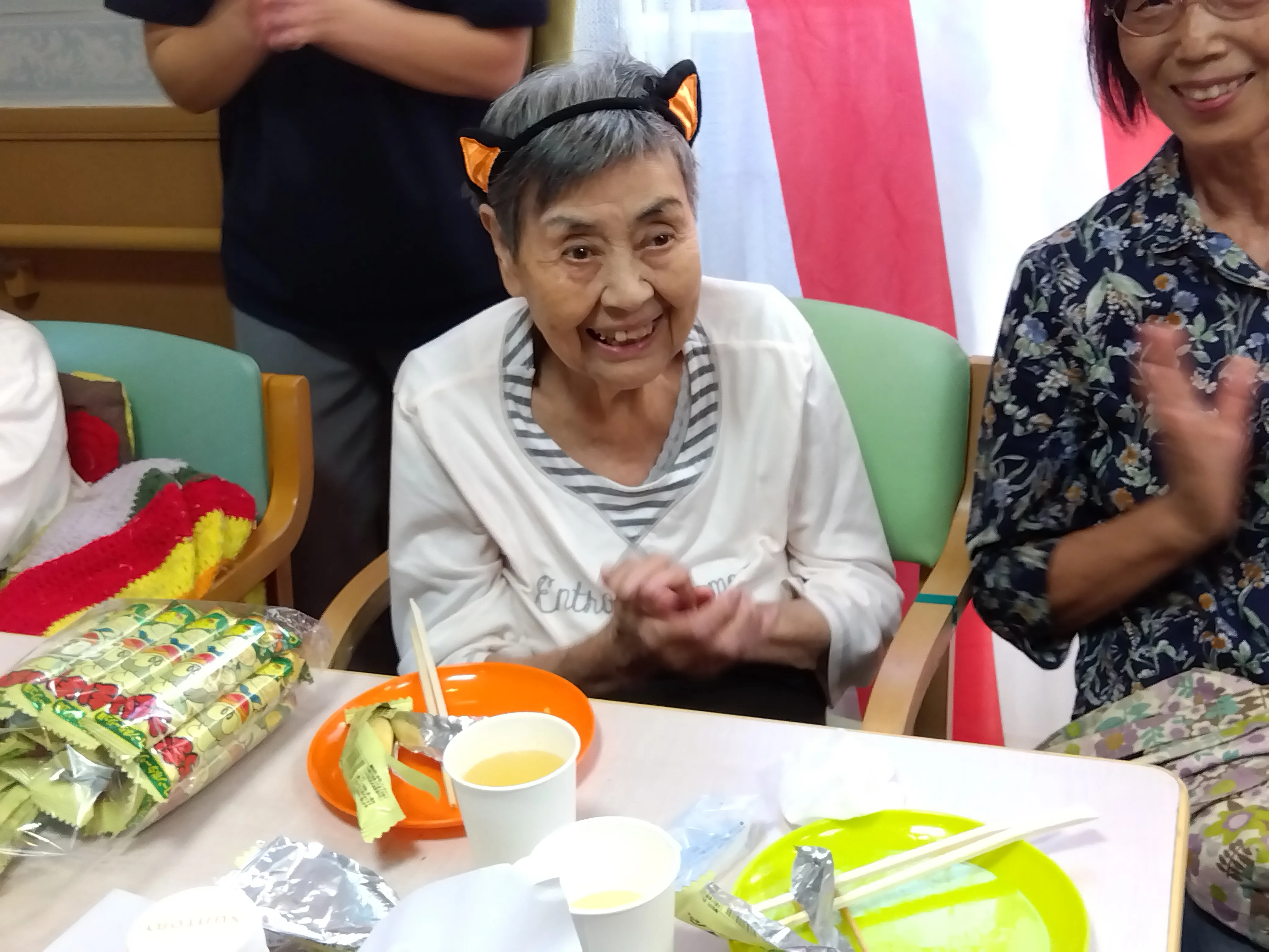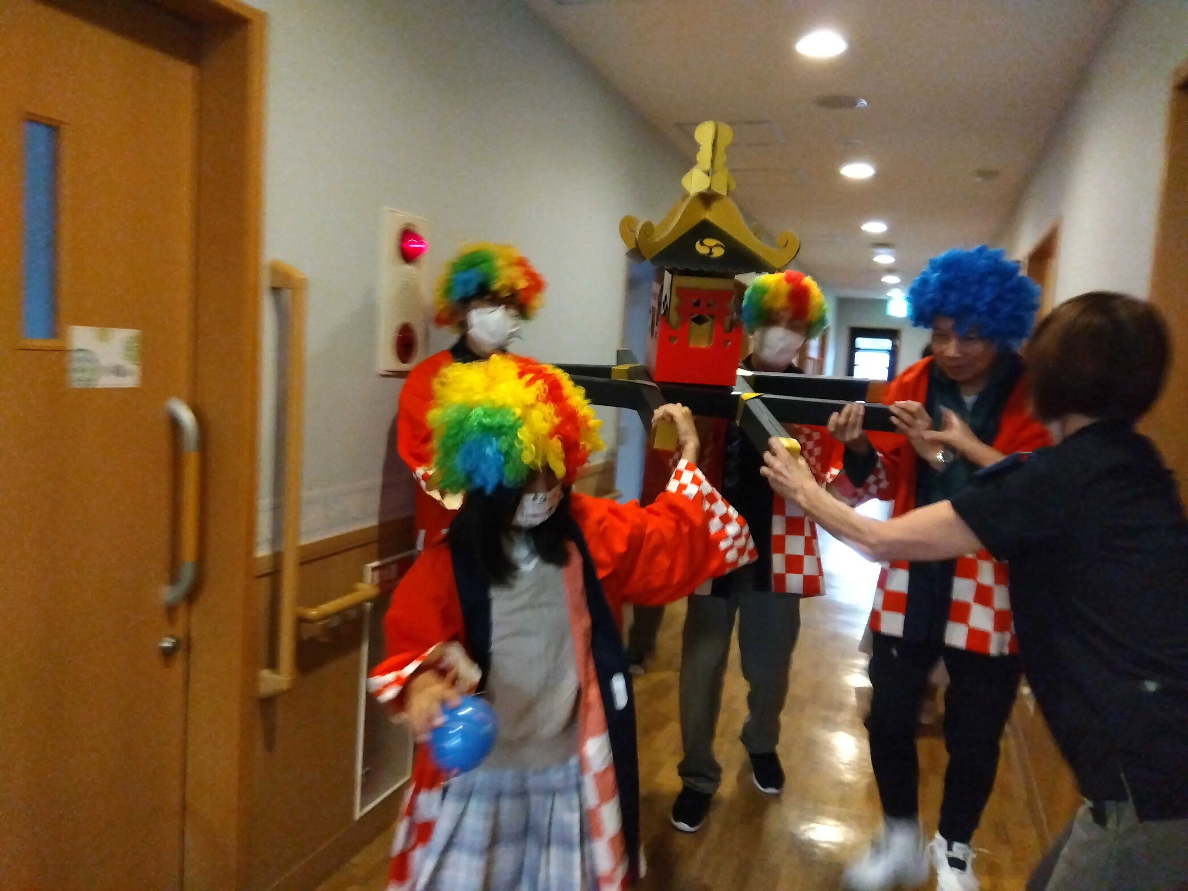 運営推進会議後に恒例の【秋祭り】を行いました。焼きそば、焼き鳥、綿菓子、焼き芋、ヨーヨー釣りなどお楽しみ頂き、お手製のお神輿で「わっしょいわっしょい」と盛り上がりました。皆様、沢山の素敵な笑顔ありがとうございます。肌寒くなってきましたが、楽しく元気にお過ごしください。