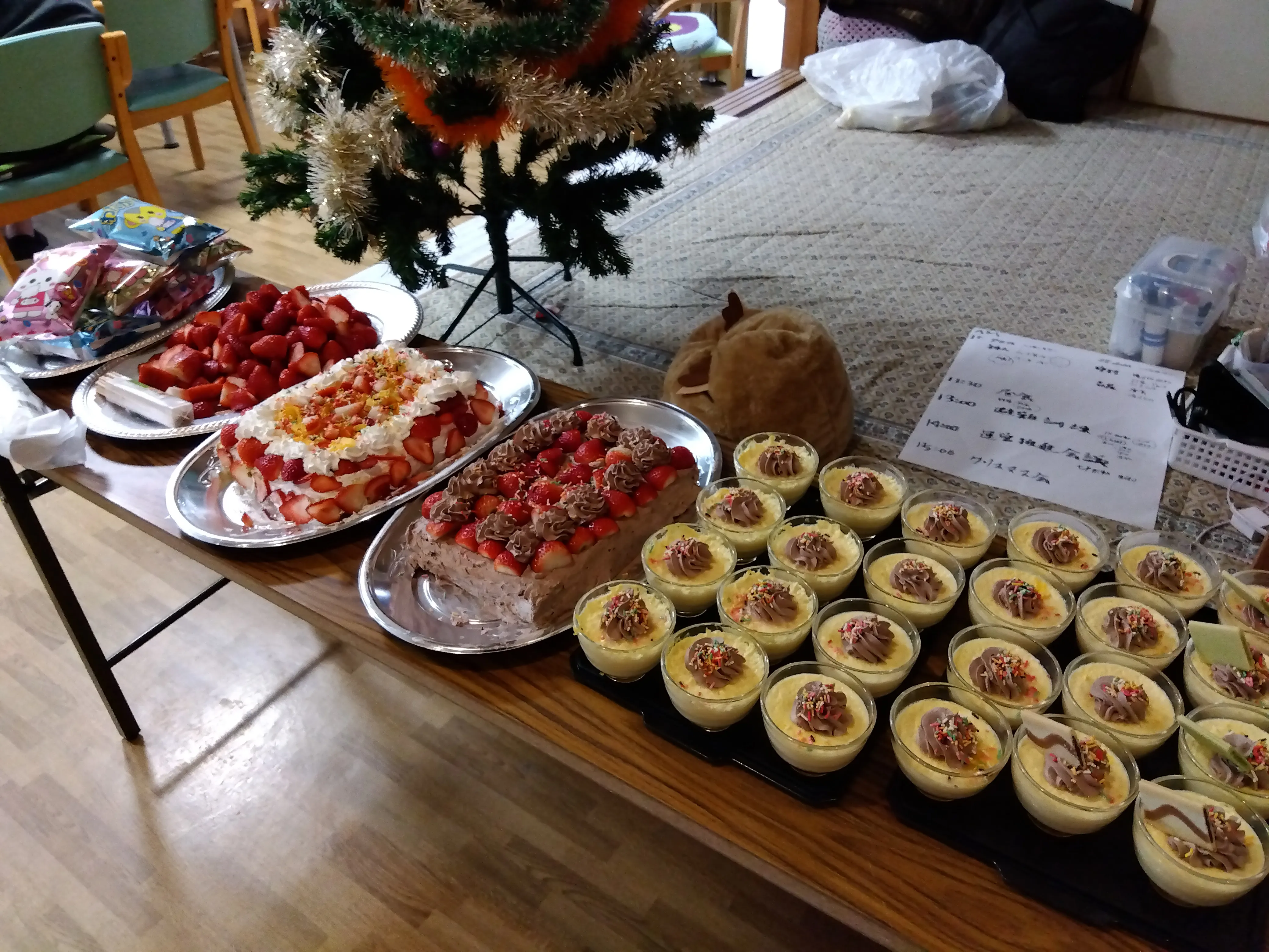 今年もあとわずかですね。本日はクリスマス会を行いました。手作りケーキにチキンやポテト、サンドイッチなど皆様にご協力いただきながら作成し楽しみました。カラオケ大会もあり楽しい時間でした。これからより一層気温も低下してきます沢山食べて元気に新年を迎えましょう。