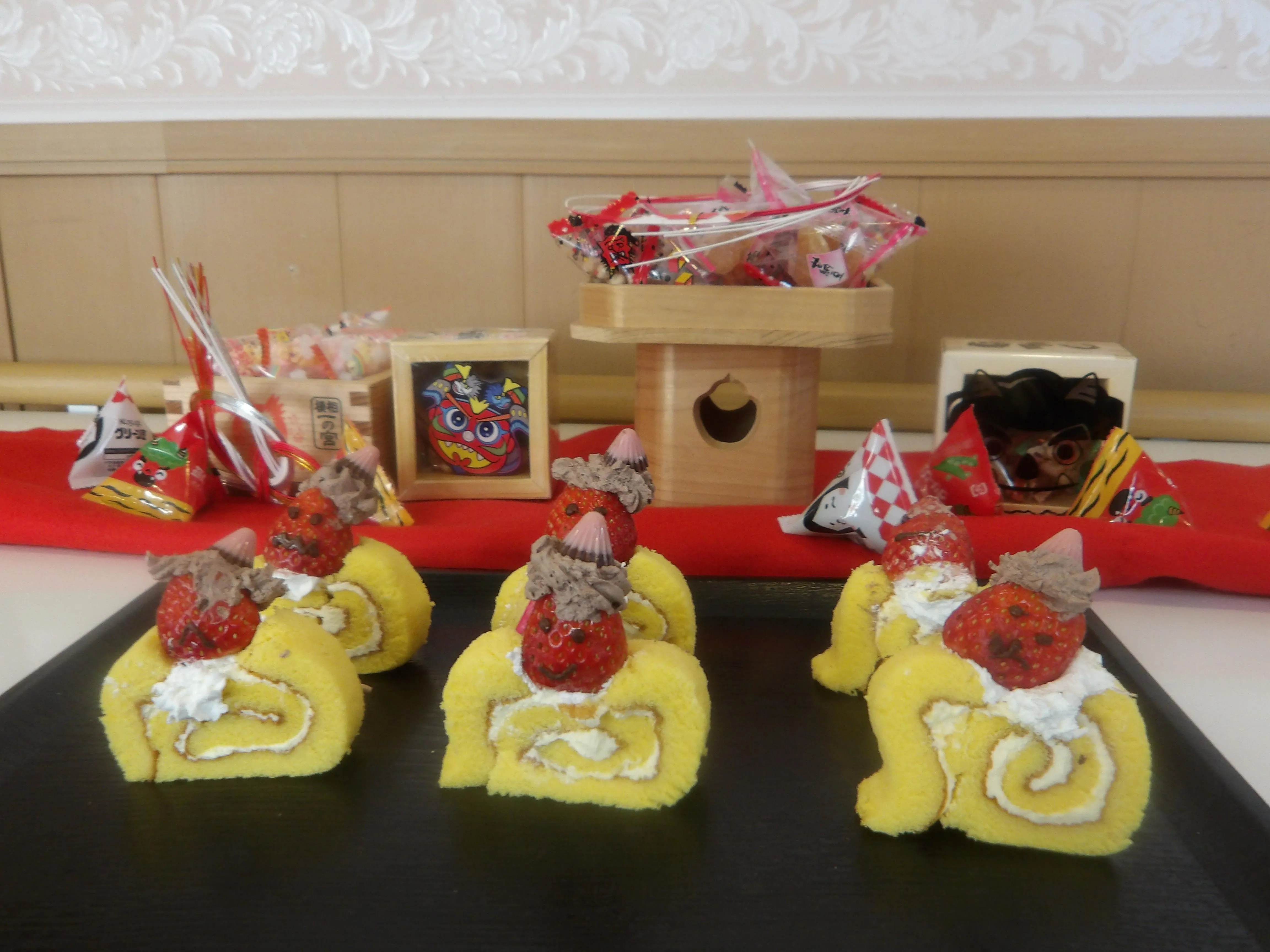 節分の由来として、季節の変わり目に起こりがちな病気や災害を鬼に見立て、それを追い払う儀式として、節分に豆まきが行われていたそうです。皆様の健康をお祈りして豆まきを行いました。豆まき後は皆様で豆を沢山召し上がっていただきました。今年もご健康な一年でありますように!