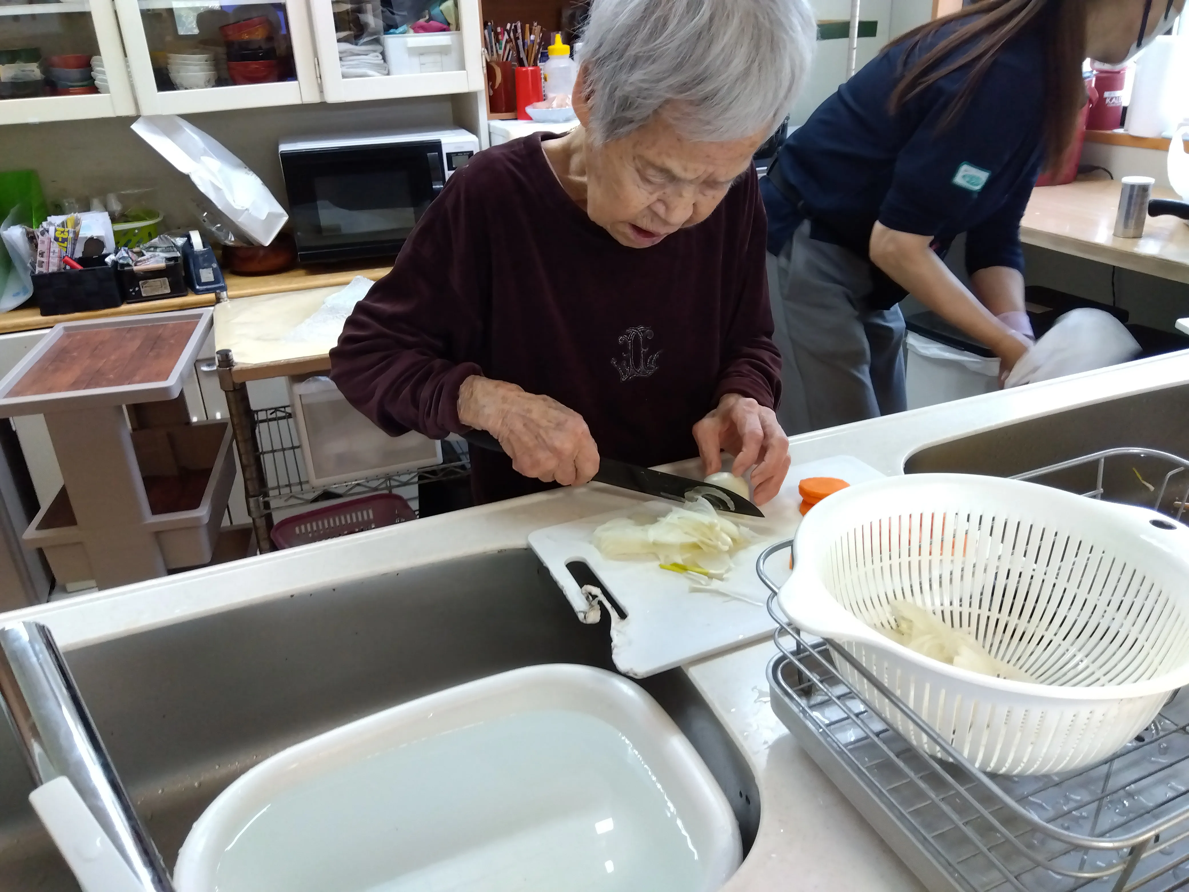 桜も散り始め、今年も猛暑の予感がする今日この頃でございます。野菜を沢山使用したお好み焼きを、皆様のおやつで楽しみました。皆様のご様子です。いつも皆様ありがとうございます。