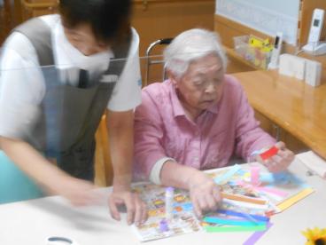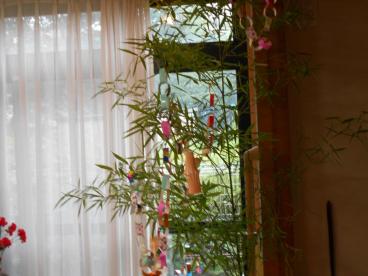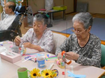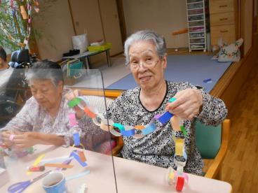 笹の葉を職員が用意して、まずは皆さま飾りつけを行っていました。