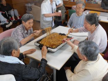 本日の昼食は、皆様で協力して【焼きそば】を作りました。