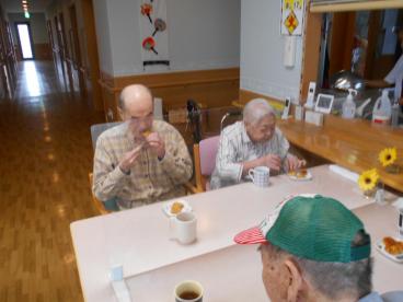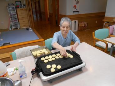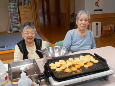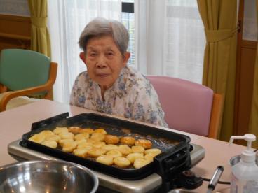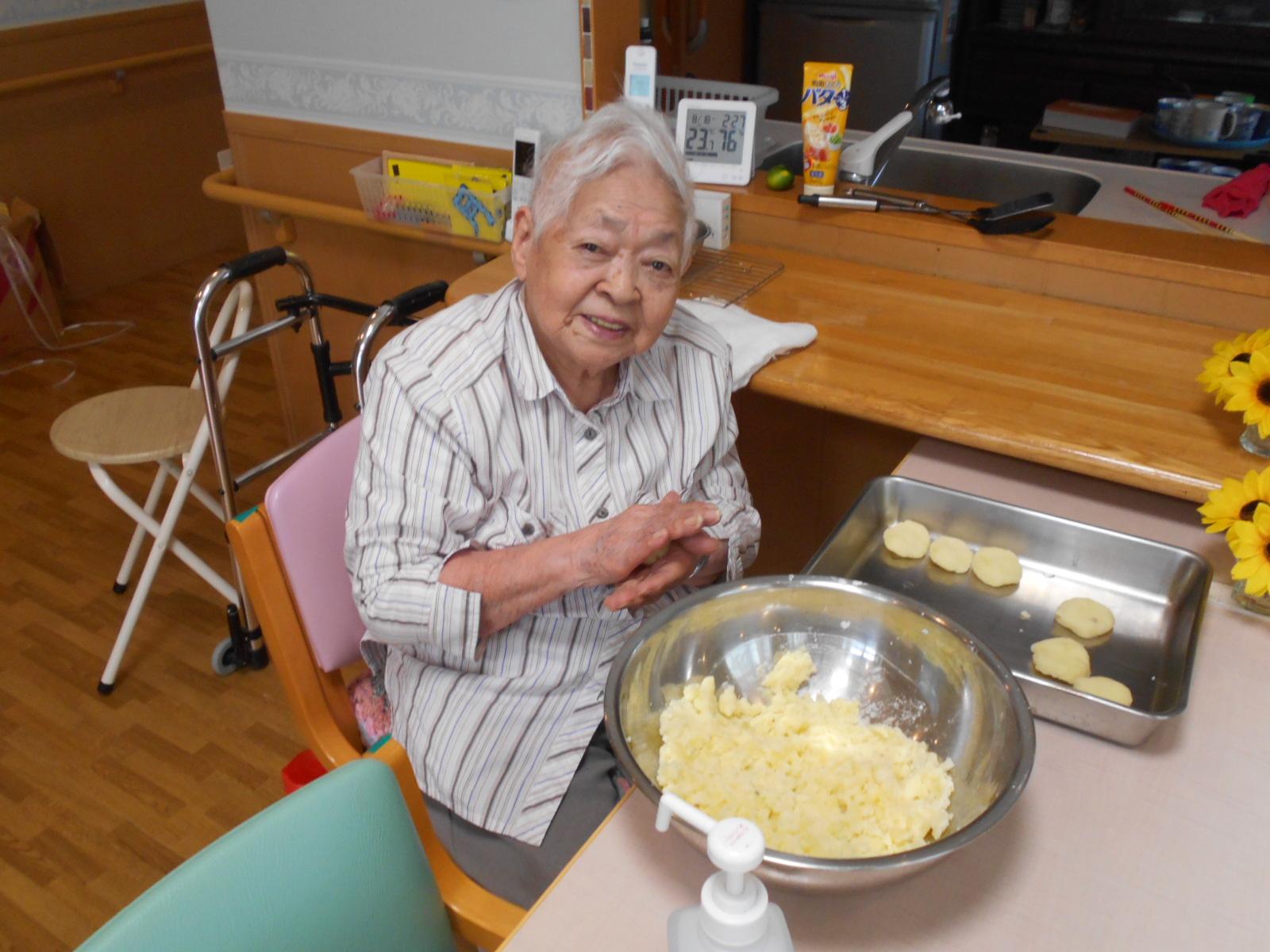 本日のおやつは、ジャガイモをゆでて丸めて形成して、しっかり焼いて砂糖醤油でからめて食べる芋餅で、皆様でつくりました。
