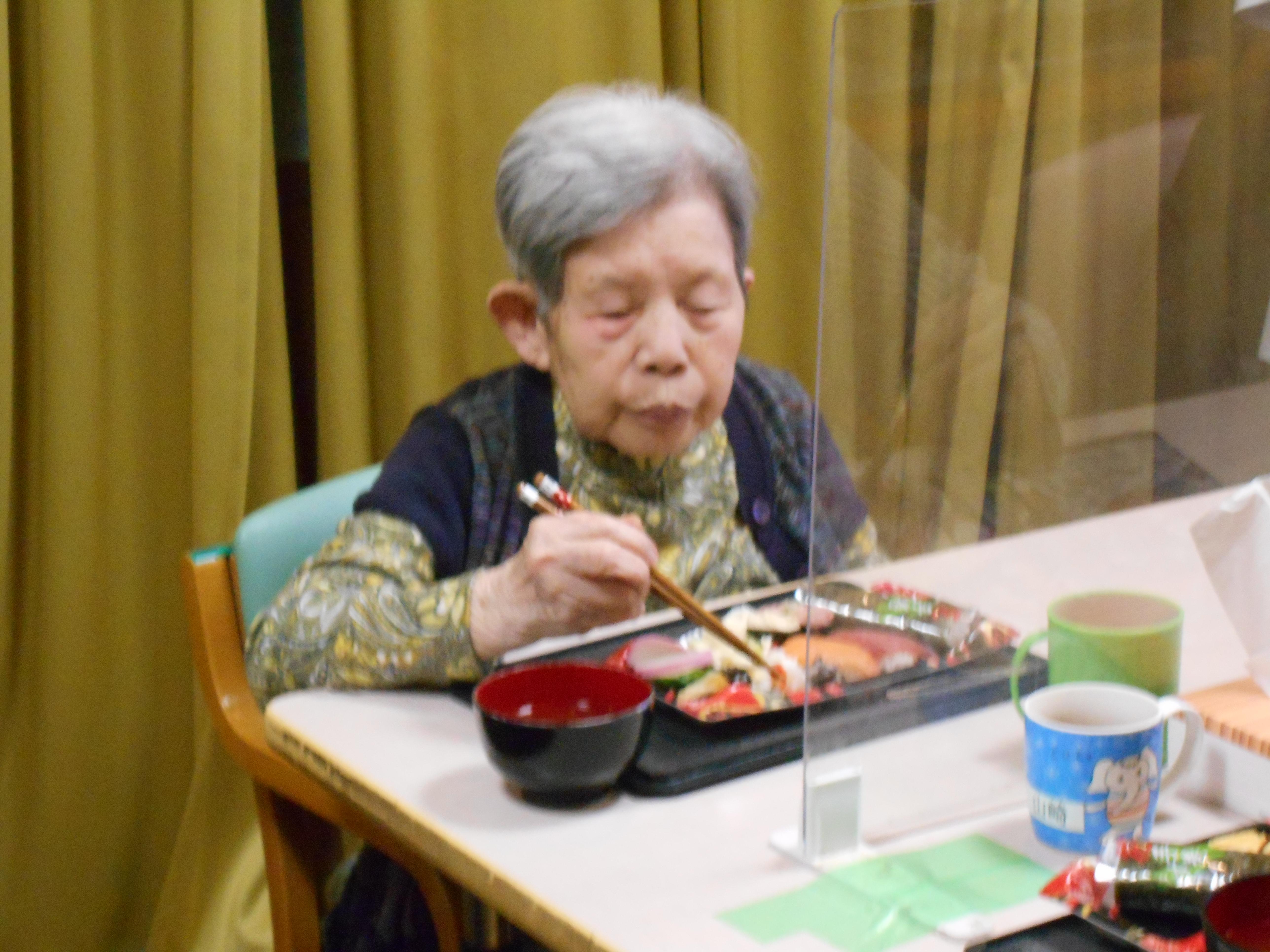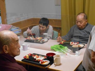 「お寿司が食べたい」とのお客様のリクエストにお応えして、本日の夕食は出前に致しました。