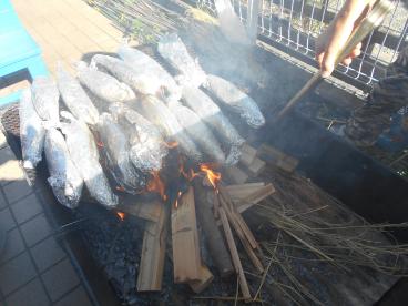 焼き芋が食べたいとのリクエストにお応えしまして、庭で焼き芋を焼きました。
