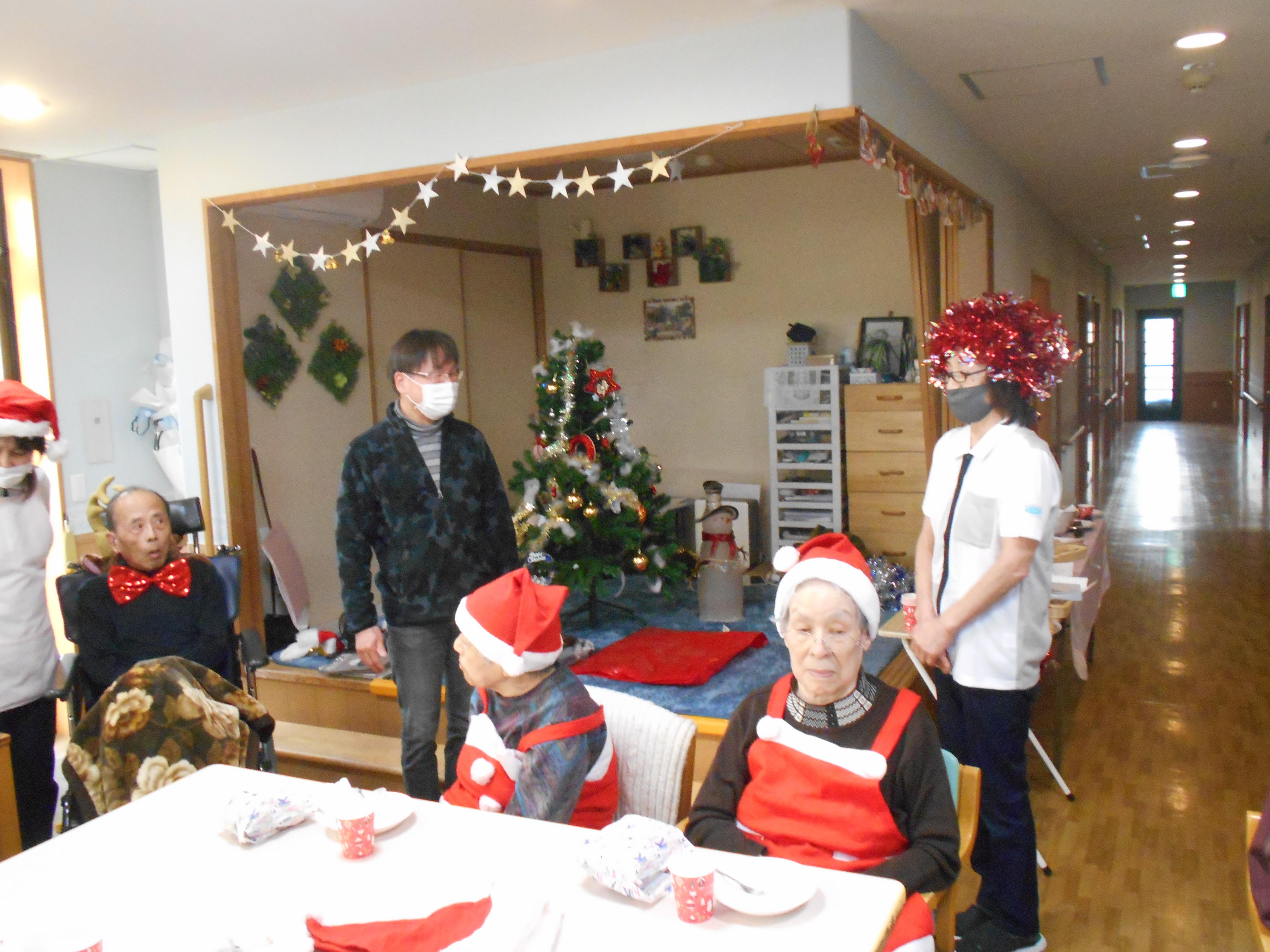 本日のクリスマス会はビンゴゲームで盛り上がり、お客様、職員で仮装して楽しみました。