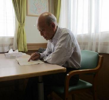 写真のお客様はご自宅でご生活されていた時から本を読んだり、新聞の切り抜きをしたりすることが好きだった方です。午後の時間、ゆっくりと読書をされている所をお写真に撮らせて頂きました。