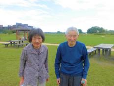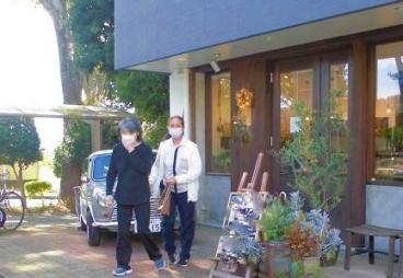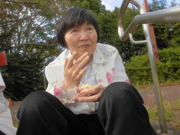 県立大学広場のベンチに座り、シュークリームを召し上がりました。